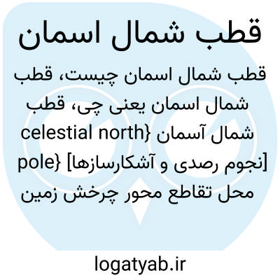 فرهنگستان زبان و ادب قطب شمال آسمان{celestial north pole} [نجوم رصدی و آشکارسازها] محل تقاطع محور چرخش زمین با نیمکرۀ شمالی آسمان