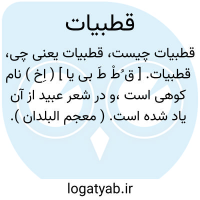 لغت نامه دهخدا قطبیات. [ ق ُطْ طَ بی یا ] ( اِخ ) نام کوهی است،و در شعر عبید از آن یاد شده است. ( معجم البلدان ).