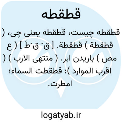( قطقطة ) قطقطة. [ ق َ ق َطَ ] ( ع مص ) باریدن ابر. ( منتهی الارب ) ( اقرب الموارد ): قطقطت السماء؛ امطرت. ( اقرب الموارد ). || تنها بانگ کردن سنگخوار. ( منتهی الارب ) ( اقرب الموارد ): قطقطت القطاة؛ صوتت وحدها. ( اقرب الموارد ).