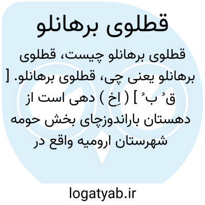 قطلوی برهانلو. [ ق ُ ب ُ ] ( اِخ ) دهی است از دهستان باراندوزچای بخش حومه شهرستان ارومیه واقع در 7500 گزی جنوب خاوری ارومیه و 500 گزی خاور شوسه ارومیه به مهاباد. موقع جغرافیایی آن جلگه و هوای آن معتدل سالم. سکنه آن 173 تن است. آب آن از باراندوزچای و محصول آن غلات، توتون، حبوب، انگور، چغندرو شغل اهالی زراعت و صنایع دستی زنان جاجیم بافی است. راه شوسه دارد. ( از فرهنگ جغرافیایی ایران ج 4 ).