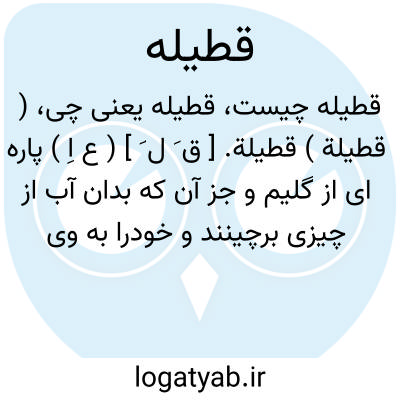 ( قطیلة ) قطیلة. [ ق َ ل َ ] ( ع اِ ) پاره ای از گلیم و جز آن که بدان آب از چیزی برچینند و خودرا به وی خشک کنند. ( منتهی الارب ) ( اقرب الموارد ).