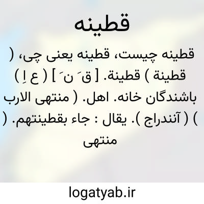 ( قطینة ) قطینة. [ ق َ ن َ ] ( ع اِ ) باشندگان خانه. اهل. ( منتهی الارب ) ( آنندراج ). یقال: جاء بقطینتهم. ( منتهی الارب ).