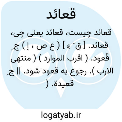 قعائد. [ ق َ ءِ ] ( ع ص، اِ ) ج ِ قَعود. ( اقرب الموارد ) ( منتهی الارب ). رجوع به قعود شود. || ج ِ قعیدة. ( مهذب الاسماء ). زوجات.