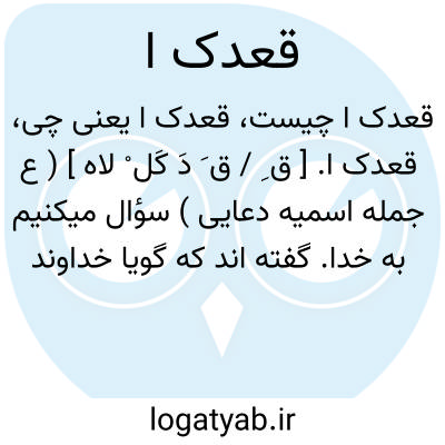 قعدک ا. [ ق ِ / ق َ دَ کَل ْ لاه ] ( ع جمله اسمیه دعایی ) سؤال میکنیم به خدا. گفته اند که گویا خداوند با تو نشسته و تو را نگهداری میکند. ( اقرب الموارد ) ( منتهی الارب ). یا معنی آن این است که با تو همنشین شود کسی که صاحب هر نجوی است. ( منتهی الارب ). و قَعْدک اﷲ کلمه استعطاف است نه قسم به دلیل اینکه جواب ندارد. و آن مصدری است که به جای فعل نشسته چون عمرک اﷲ به معنی سألت اﷲ تعمرک،ای اطالة عمرک. همچنین قَعْدک اﷲ، ای قَعَدَک اﷲ به معنی سألت اﷲ حفظک. ( اقرب الموارد ) ( منتهی الارب ).