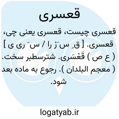قعسری. [ ق َ س َ ری ی ] ( ع ص ) قدیم و دیرینه. ( اقرب الموارد ) ( منتهی الارب ). || شتر سطبر سخت. ( منتهی الارب ). الجمل الضخم الشدید. قِعْسَرّی ̍. || مرد مانده بر پیری. ( اقرب الموارد ). || ( اِ ) چوبک که بدان آسیای دستی گردانده شود. ( منتهی الارب ) ( اقرب الموارد ).