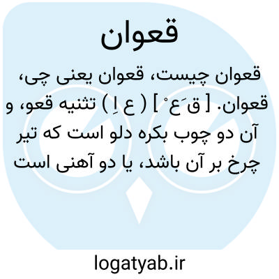 قعوان. [ ق َع ْ ] ( ع اِ ) تثنیه قعو، و آن دو چوب بکره دلو است که تیر چرخ بر آن باشد، یا دو آهنی است که در میان آن بکره گردد. ج، قُعی. ( منتهی الارب ) ( اقرب الموارد ).