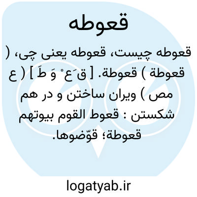 لغت نامه دهخدا ( قعوطة ) قعوطة. [ ق َع ْ وَ طَ ] ( ع مص ) ویران ساختن و در هم شکستن: قعوط القوم بیوتهم قعوطة؛ قوّضوها. ( اقرب الموارد ).