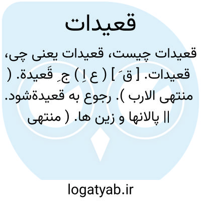 قعیدات. [ ق َ ] ( ع اِ ) ج ِ قَعیدة. ( منتهی الارب ). رجوع به قعیدةشود. || پالانها و زین ها. ( منتهی الارب ).