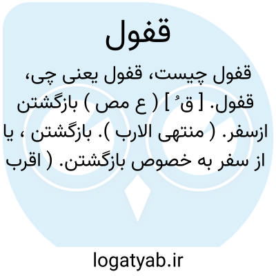 قفول. [ ق ُ ] ( ع مص ) بازگشتن ازسفر. ( منتهی الارب ). بازگشتن، یا از سفر به خصوص بازگشتن. ( اقرب الموارد ). || بازگرداندن. ( اقرب الموارد ). || خشک گشتن. ( منتهی الارب ) ( اقرب الموارد ). باریک اندام گشتن و خشک شدن. || قفل کردن در. ( اقرب الموارد ). || برانگیخته شدن به گشنی کردن. || اندازه کردن چیزی که چندان است. || نگاه داشتن گندم را تا به گرانی فروشند، و فراهم آوردن. ( منتهی الارب ).