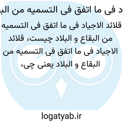[ویکی فقه] قلائد الاجیاد فی ما اتفق فی التسمیة من البقاع و البلاد (کتاب). «قلائد الاجیاد فی ما اتفق فی التسمیة من البقاع و البلاد»، تالیف عبد الرحمن بن سید ابراهیم حسنی حنبلی، متوفای (۱۱۰۲ ق)، به زبان عربی و در معرفی پاره ای از اماکن و بلاد است. کتاب، منتخب و گزیده ای است از کتاب «المشترک وضعا و المختلف صقعا»، تالیف ابو عبدالله یاقوت بن عبدالله یاقوت حموی.