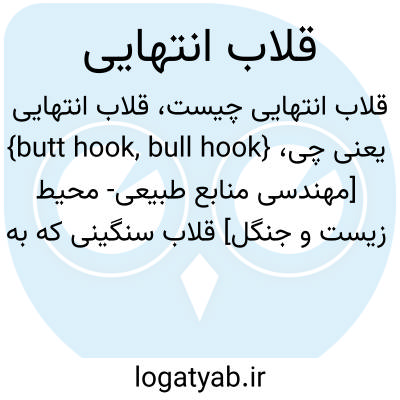 {butt hook, bull hook} [مهندسی منابع طبیعی- محیط زیست و جنگل] قلاب سنگینی که به تجهیزات انتهایی بسته می شود و خِفت ها به آنها وصل می شوند
