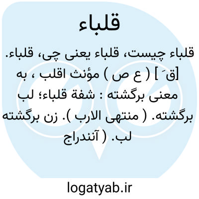 قلباء. [ق َ ] ( ع ص ) مؤنث اقلب، به معنی برگشته: شفة قلباء؛ لب برگشته. ( منتهی الارب ). زن برگشته لب. ( آنندراج ).