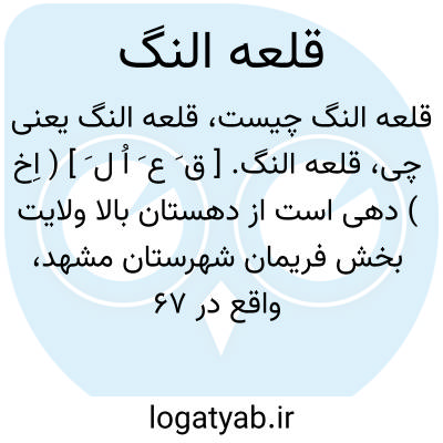 قلعه النگ. [ ق َ ع َ اُ ل َ ] ( اِخ ) دهی است از دهستان بالا ولایت بخش فریمان شهرستان مشهد، واقع در 67 هزارگزی شمال فریمان. موقع جغرافیایی آن کوهستانی و هوای آن معتدل. سکنه آن 6 تن است. آب آن از قنات و محصول آن غلات و شغل اهالی زراعت وراه آن مالرواست. ( از فرهنگ جغرافیایی ایران ج 9 ).
