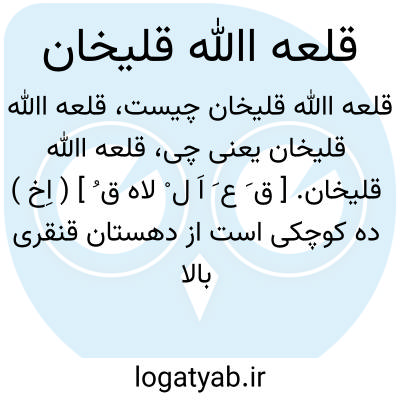 قلعه اﷲ قلیخان. [ ق َ ع َ اَ ل ْ لاه ق ُ ] ( اِخ ) ده کوچکی است از دهستان قنقری بالا ( علیا ) بخش بوانات و سرچمان شهرستان آباده، واقع در 61 هزارگزی باختر سوریان و یک هزارگزی شوسه اصفهان به شیراز. سکنه آن 22 تن است. ( از فرهنگ جغرافیایی ایران ج 7 ).