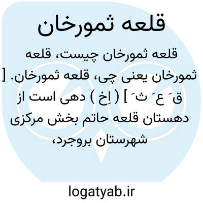 قلعه ثمورخان. [ ق َ ع َ ث َ ] ( اِخ ) دهی است از دهستان قلعه حاتم بخش مرکزی شهرستان بروجرد، واقع در 8 هزارگزی شمال باختری بروجردو 9 هزارگزی شمال شوسه بروجرد. موقع جغرافیایی آن جلگه و هوای آن سردسیری است. سکنه آن 245 تن است. آب آن از قنات و محصول آن غلات و شغل اهالی زراعت است.راه مالرو دارد. ( از فرهنگ جغرافیایی ایران ج 6 ).