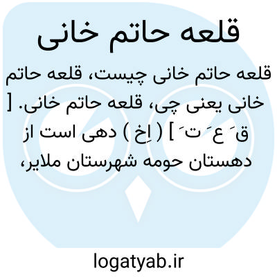 قلعه حاتم خانی. [ ق َ ع َ ت َ ] ( اِخ ) دهی است از دهستان حومه شهرستان ملایر، واقع در 21هزارگزی جنوب خاوری شهر ملایر و کنار راه اتومبیل رو مانیزان به ملایر، موقع جغرافیایی آن جلگه و معتدل مالاریایی است. سکنه آن 274 تن است.آب آن از قنات و محصول آن غلات، انگور، قلمستان و شغل اهالی زراعت و صنایع دستی زنان، قالی بافی است. راه اتومبیل رو دارد. ( از فرهنگ جغرافیایی ایران ج 5 ).