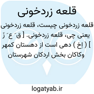 قلعه زردخونی. [ ق َ ع َ زَ ] ( اِخ ) دهی است از دهستان کمهر وکاکان بخش اردکان شهرستان شیراز، واقع در 43هزارگزی شمال باختر اردکان کنار شوسه اردکان به تل خسروی. موقع جغرافیایی آن جلگه و هوای آن معتدل است. سکنه آن 90 تن است. آب آن از چشمه و محصول آن غلات، حبوبات و شغل اهالی زراعت است. ( از فرهنگ جغرافیایی ایران ج 7 ).