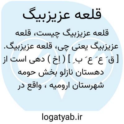 قلعه عزیزبیگ. [ ق َ ع َ ع َ ب ِ ] ( اِخ ) دهی است از دهستان نازلو بخش حومه شهرستان ارومیه، واقع در 15500گزی شمال خاوری ارومیه و 7هزارگزی خاور شوسه ارومیّه به شاهپور. موقع آن جلگه ومعتدل سالم است. سکنه آن 123 تن است. آب آن از نازلوچای و محصول آن غلات، توتون، چغندر، کشمش، حبوبات وشغل اهالی زراعت و صنایع دستی زنان جوراب بافی است. راه ارابه رو دارد. ( از فرهنگ جغرافیایی ایران ج 4 ).