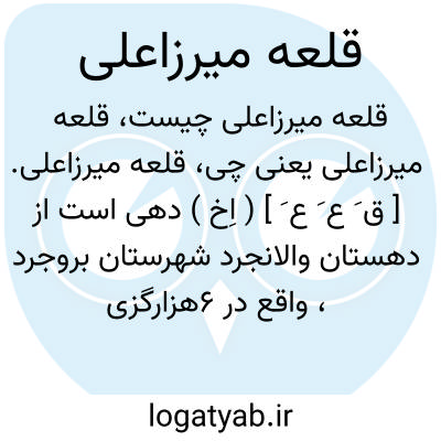 قلعه میرزاعلی. [ ق َ ع َ ع َ ] ( اِخ ) دهی است از دهستان والانجرد شهرستان بروجرد، واقع در 6هزارگزی جنوب بروجردو 2 هزارگزی شمال شوسه بروجرد به خرم آباد. موقع جغرافیایی آن جلگه و هوای آن سردسیری است. آب آن از رودخانه و قنات و محصول آن غلات و شغل اهالی زراعت است. راه مالرو دارد. ( از فرهنگ جغرافیایی ایران ج 6 ).