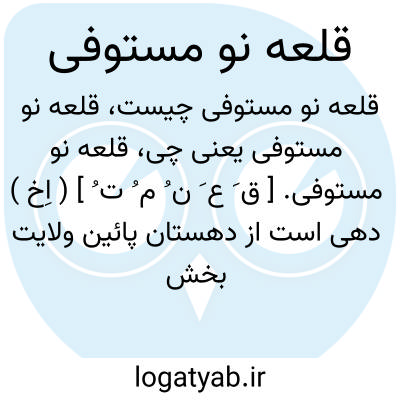 قلعه نو مستوفی. [ ق َ ع َ ن ُ م ُ ت ُ ] ( اِخ ) دهی است از دهستان پائین ولایت بخش حومه ٔشهرستان تربت حیدریه، واقع در 10 هزارگزی جنوب تربت حیدریه سر راه رشخوار. موقع جغرافیایی آن دامنه و هوای آن معتدل است. سکنه آن 379 تن است. آب آن از قنات و محصول آن غلات، پنبه و شغل اهالی زراعت و گله داری و کرباس بافی است. راه مالرو دارد و از نوروزآباد میتوان اتومبیل برد. ( از فرهنگ جغرافیایی ایران ج 9 ).
