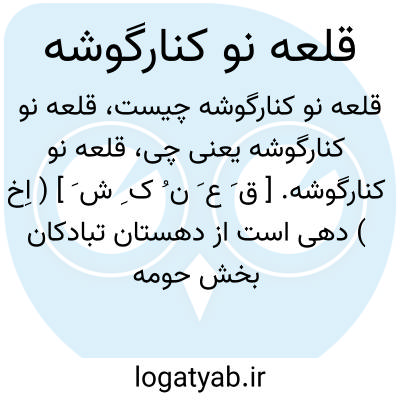 قلعه نو کنارگوشه. [ ق َ ع َ ن ُ ک ِ ش َ ] ( اِخ ) دهی است از دهستان تبادکان بخش حومه شهرستان مشهد، واقع در 15هزارگزی شمال خاوری مشهد و کنار راه عمومی مشهد به تبادکان. موقع جغرافیایی آن جلگه و هوای آن معتدل است. سکنه آن 21 تن است. آب آن از قنات و محصول آن غلات و شغل اهالی زراعت است. راه اتومبیل رو دارد. ( از فرهنگ جغرافیایی ایران ج 9 ).