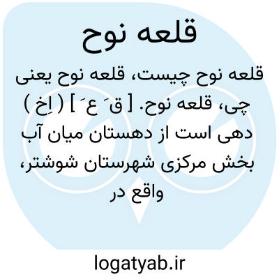 قلعه نوح. [ ق َ ع َ ] ( اِخ ) دهی است از دهستان میان آب بخش مرکزی شهرستان شوشتر، واقع در 7هزارگزی جنوب باختری شوشتر و 5هزارگزی باختر راه تابستانی شوشتر به بند قیر کنار خاوری رود شطیط. موقع جغرافیایی آن دشت و هوای آن گرمسیری است. سکنه آن 150 تن است. آب آن از کارون و محصول آن غلات، برنج، صیفی، کنجد و شغل اهالی زراعت است.راه در تابستان اتومبیل رو است و ساکنین از طایفه عرب میان آب هستند. ( از فرهنگ جغرافیایی ایران ج 6 ).