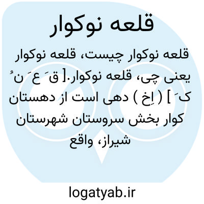 قلعه نوکوار.[ ق َ ع َ ن ُ ک َ ] ( اِخ ) دهی است از دهستان کوار بخش سروستان شهرستان شیراز، واقع در 109هزارگزی جنوب باختری سروستان و 3هزارگزی شوسه شیراز به فیروزآباد. موقع جغرافیایی آن جلگه و هوای آن معتدل مالاریائی است. سکنه آن 121 تن است. آب آن از رودخانه قره آغاج ومحصول آن غلات، چغندر و صیفی و شغل اهالی زراعت است.راه مالرو دارد. ( از فرهنگ جغرافیایی ایران ج 7 ).
