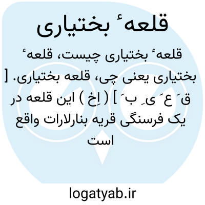 قلعه بختیاری. [ ق َ ع َ ی ِ ب َ ] ( اِخ ) این قلعه در یک فرسنگی قریه بنارلارات واقع است آبش از آب انباری است که به توسط باران پر میشود. ( جغرافیای غرب ایران ص 128 ).