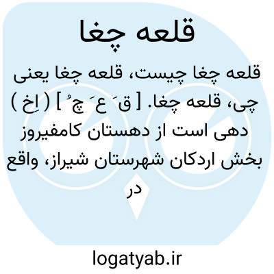 قلعه چغا. [ ق َ ع َ چ ُ ] ( اِخ ) دهی است از دهستان کامفیروز بخش اردکان شهرستان شیراز، واقع در 52هزارگزی خاور اردکان و یک هزارگزی راه فرعی خانی من به پُل خان. موقع جغرافیایی آن جلگه و هوای آن معتدل مالاریایی است. سکنه آن 138 تن است. آب آن از رود کر و محصول آن غلات، برنج و شغل اهالی زراعت است.راه مالرو دارد. ( از فرهنگ جغرافیایی ایران ج 7 ).