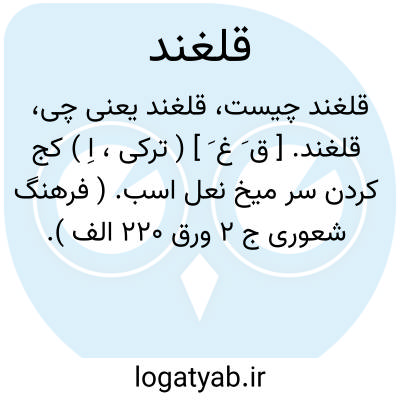 قلغند. [ ق َ غ َ ] ( ترکی، اِ ) کج کردن سر میخ نعل اسب. ( فرهنگ شعوری ج 2 ورق 220 الف ).