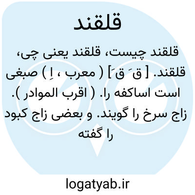 قلقند. [ ق َ ق َ] ( معرب، اِ ) صبغی است اساکفه را. ( اقرب الموادر ). زاج سرخ را گویند. و بعضی زاج کبود را گفته اند. ( آنندراج ) ( ناظم الاطباء ) ( برهان ). ماده ای است بین شب و زاج. رجوع به نخبة الدهر دمشقی ص 80 شود. زاج سبز. ( تحفه حکیم مؤمن ). نوعی از زاج است به رنگ سبز. ( ذخیره خوارزمشاهی ) ( فرهنگ شعوری ج 2 ورق 22 الف ). رجوع به قلقنت و قلقطار شود.