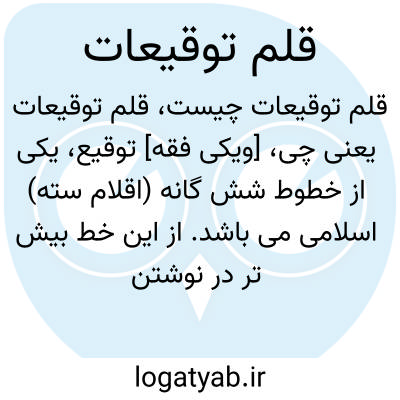 [ویکی فقه] توقیع، یکی از خطوط شش گانه (اقلام سته) اسلامی می باشد.