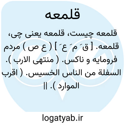 قلمعه. [ ق َ م َ ع َ ] ( ع ص ) مردم فرومایه و ناکس. ( منتهی الارب ). السفلة من الناس الخسیس. ( اقرب الموارد ). || ( مص ) زدن و افکندن یا ستردن موی سر. ( منتهی الارب ) ( اقرب الموارد ): قلمع رأسه؛ ضربه فاندره و قیل حلقه. || کندن چیز را از بن. ( اقرب الموارد ).