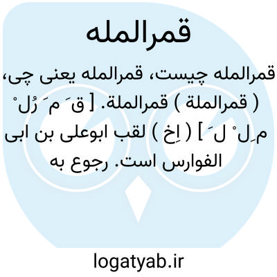 ( قمرالملة ) قمرالملة. [ ق َ م َ رُل ْ م ِل ْ ل َ ] ( اِخ ) لقب ابوعلی بن ابی الفوارس است. رجوع به ترجمه تاریخ یمینی چاپی ص 313 شود.