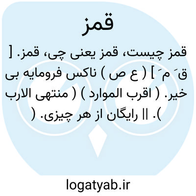 قمز. [ ق َ م َ ] ( ع ص ) ناکس فرومایه بی خیر. ( اقرب الموارد ) ( منتهی الارب ). || رایگان از هر چیزی. ( منتهی الارب ).