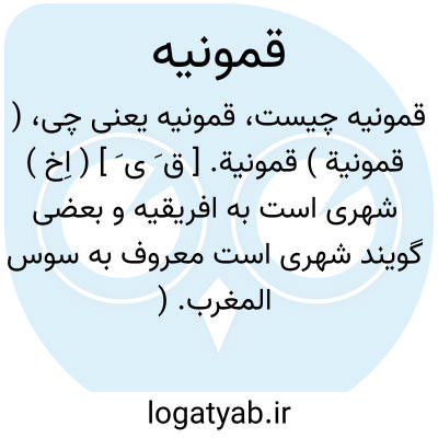 ( قمونیة ) قمونیة. [ ق َ ی َ ] ( اِخ ) شهری است به افریقیه و بعضی گویند شهری است معروف به سوس المغرب. ( از معجم البلدان ) ( منتهی الارب ).