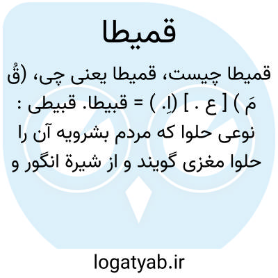 فرهنگ معین (قُ مَ ) [ ع. ] (اِ. ) = قبیطا. قبیطی: نوعی حلوا که مردم بشرویه آن را حلوا مغزی گویند و از شیرة انگور و گاهی از شکر تنها و یا با شیرة انگور می سازند.