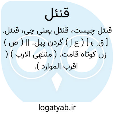 قنئل. [ ق ِ ءِ ] ( ع اِ ) گردن پیل. || ( ص ) زن کوتاه قامت. ( منتهی الارب ) ( اقرب الموارد ).