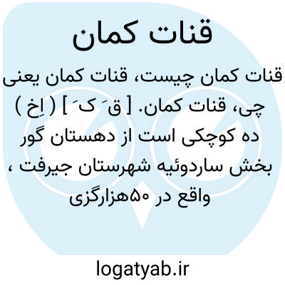 قنات کمان. [ ق َ ک َ ] ( اِخ ) ده کوچکی است از دهستان گور بخش ساردوئیه شهرستان جیرفت، واقع در 50هزارگزی جنوب خاوری ساردوئیه و 9هزارگزی جنوب راه مالرو ساردوئیه به دارزین، سکنه آن 18 تن است. ( از فرهنگ جغرافیایی ایران ج 8 ).
