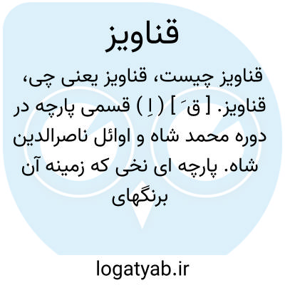 قناویز. [ ق َ ] ( اِ ) قسمی پارچه در دوره محمد شاه و اوائل ناصرالدین شاه. پارچه ای نخی که زمینه آن برنگهای مختلف بود و خطوطی از رنگی دیگر بموازات و برنگی جز رنگ زمینه پارچه با فاصله های بسیار کم بر آن نقش کرده بوده اند.