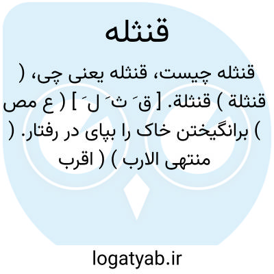 ( قنثلة ) قنثلة. [ ق َ ث َ ل َ ] ( ع مص ) برانگیختن خاک را بپای در رفتار. ( منتهی الارب ) ( اقرب الموارد ) ( آنندراج ). چون نقثلة. ( از اقرب الموارد ).