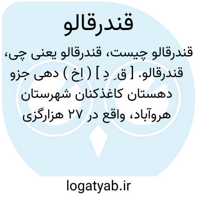 قندرقالو. [ ق ِ دِ ] ( اِخ ) دهی جزو دهستان کاغذکنان شهرستان هروآباد، واقع در 27 هزارگزی جنوب خاوری آفکند و 2800 گزی شوسه میانه به زنجان. موقع جغرافیایی آن کوهستانی و گرمسیر است. سکنه آن 248 تن است. آب آن از دو رشته چشمه و محصول آن غلات، حبوبات، سر درختی و شغل اهالی زراعت و گله داری و صنایع دستی زنان جاجیم و گلیم بافی است.راه مالرو دارد. ( از فرهنگ جغرافیایی ایران ج 4 ).