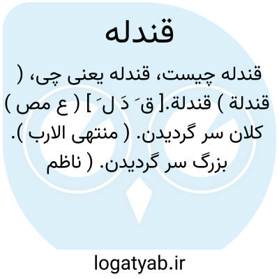 ( قندلة ) قندلة.[ ق َ دَ ل َ ] ( ع مص ) کلان سر گردیدن. ( منتهی الارب ). بزرگ سر گردیدن. ( ناظم الاطباء ) ( اقرب الموارد ). کلان سر گردیدن شتر. ( آنندراج ). || نرم و سست رفتن است. ( منتهی الارب ) ( اقرب الموارد ) ( ناظم الاطباء ).