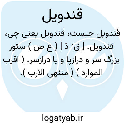 قندویل. [ ق َ دَ ] ( ع ص ) ستور بزرگ سر و درازپا و یا درازسر. ( اقرب الموارد ) ( منتهی الارب ). بزرگ سر از شترو دیگر ستور. ( ناظم الاطباء ) ( آنندراج ). رجوع به قَندَل شود. || کلان و بزرگ. ( ناظم الاطباء ).