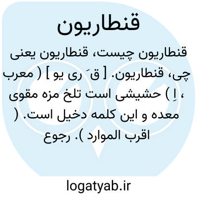 قنطاریون. [ ق َ ری یو ] ( معرب، اِ ) حشیشی است تلخ مزه مقوی معده و این کلمه دخیل است. ( اقرب الموارد ). رجوع به قنطوریون شود.