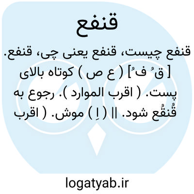 قنفع. [ ق ُ ف ُ] ( ع ص ) کوتاه بالای پست. ( اقرب الموارد ). رجوع به قُنقُع شود. || ( اِ ) موش. ( اقرب الموارد ).