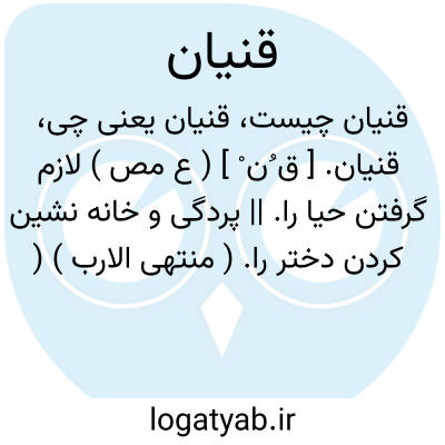 قنیان. [ ق ُن ْ ] ( ع مص ) لازم گرفتن حیا را. || پردگی و خانه نشین کردن دختر را. ( منتهی الارب ) ( آنندراج ). || ورزیدن و کسب کردن. ( منتهی الارب ) ( آنندراج ) ( از اقرب الموارد ). || خوشنود گردانیدن. ( منتهی الارب ) ( آنندراج ). قَنْی ْ. ( منتهی الارب ) ( اقرب الموارد ). رجوع به قنی شود.