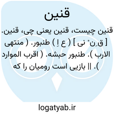 قنین. [ ق ِن ْ نی ] ( ع اِ ) طنبور. ( منتهی الارب ). طنبور حبشه. ( اقرب الموارد ). || بازیی است رومیان را که بدان قمار بازند. ( منتهی الارب ).