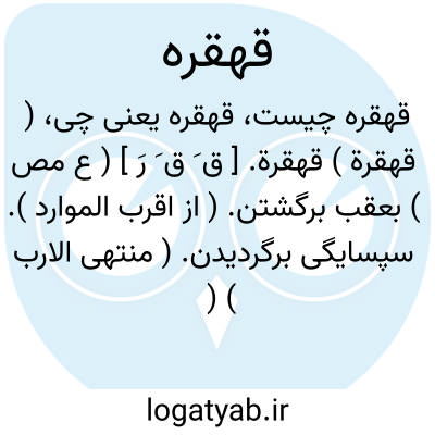( قهقرة ) قهقرة. [ ق َ ق َ رَ ] ( ع مص ) بعقب برگشتن. ( از اقرب الموارد ). سپسایگی برگردیدن. ( منتهی الارب ) ( ناظم الاطباء ). || ( اِ ) گندم که سیاه شود بعد سبزی. ( منتهی الارب ) ( از اقرب الموارد ) ( ناظم الاطباء ). گندمی که پس از سبزی سیاه گردد. ( ناظم الاطباء ). || پاره سنگ ضخیم. ( از اقرب الموارد ).