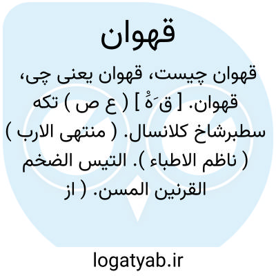 قهوان. [ ق َهَْ ] ( ع ص ) تکه سطبرشاخ کلانسال. ( منتهی الارب ) ( ناظم الاطباء ). التیس الضخم القرنین المسن. ( از اقرب الموارد ). || ( اِ ) مقل و آن صمغی است چون کندر قرمز و خوشبو. ( از معجم البلدان ).
